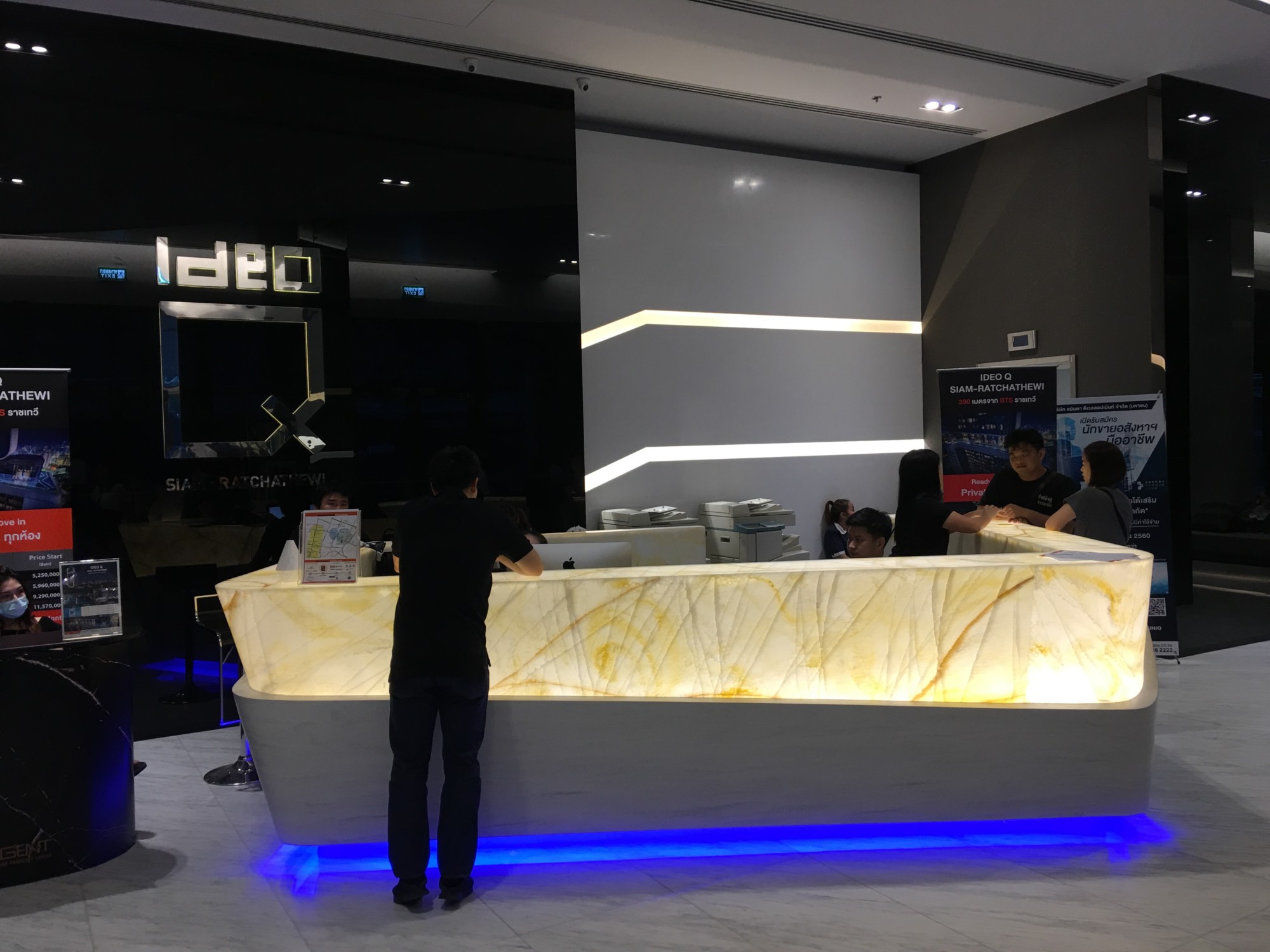 1. Design ของ Lobby :: ผมว่า เค้าพยายามจะทำงานให้เป็นแนว futuristic มีการใช้พวกหินอ่อน กระจกรมดำ หินสีดำ แสงสีฟ้า โดยรวมผมไม่ชอบ design นี้ครับ ผมคิดว่า futuristic มันจะดูล้ำได้อีกไม่นาน เราต้องอยู่กับคอนโดนี้ไปอีก 30 ปีนะครับ ไม่นานมันก็ไม่สวยแล้ว (ผมอาจจะแก่แล้วนะ 555) ตัว lobby ก็ดูแคบๆ กั้น ไป กั้นมา ไม่รู้สึกถึงความ grand เลย การ design แบบ modern แนวที่อนันดาชอบทำผมว่ามันขาดอารมณ์ความรู้สึกไปนะ มันดูแข็งๆ แห้งแล้งๆ ขาด feeling อบอุ่น welcome ที่คนอยู่ต้องการ เหมือนจะเย็นชาไปนะ แต่ๆ ๆ ๆ ถ้าคนชอบหนัง sci fi ชอบแบบแมนๆมากๆ ก็อาจจะชอบ design lobby ที่นี่ก็ได้ครับ