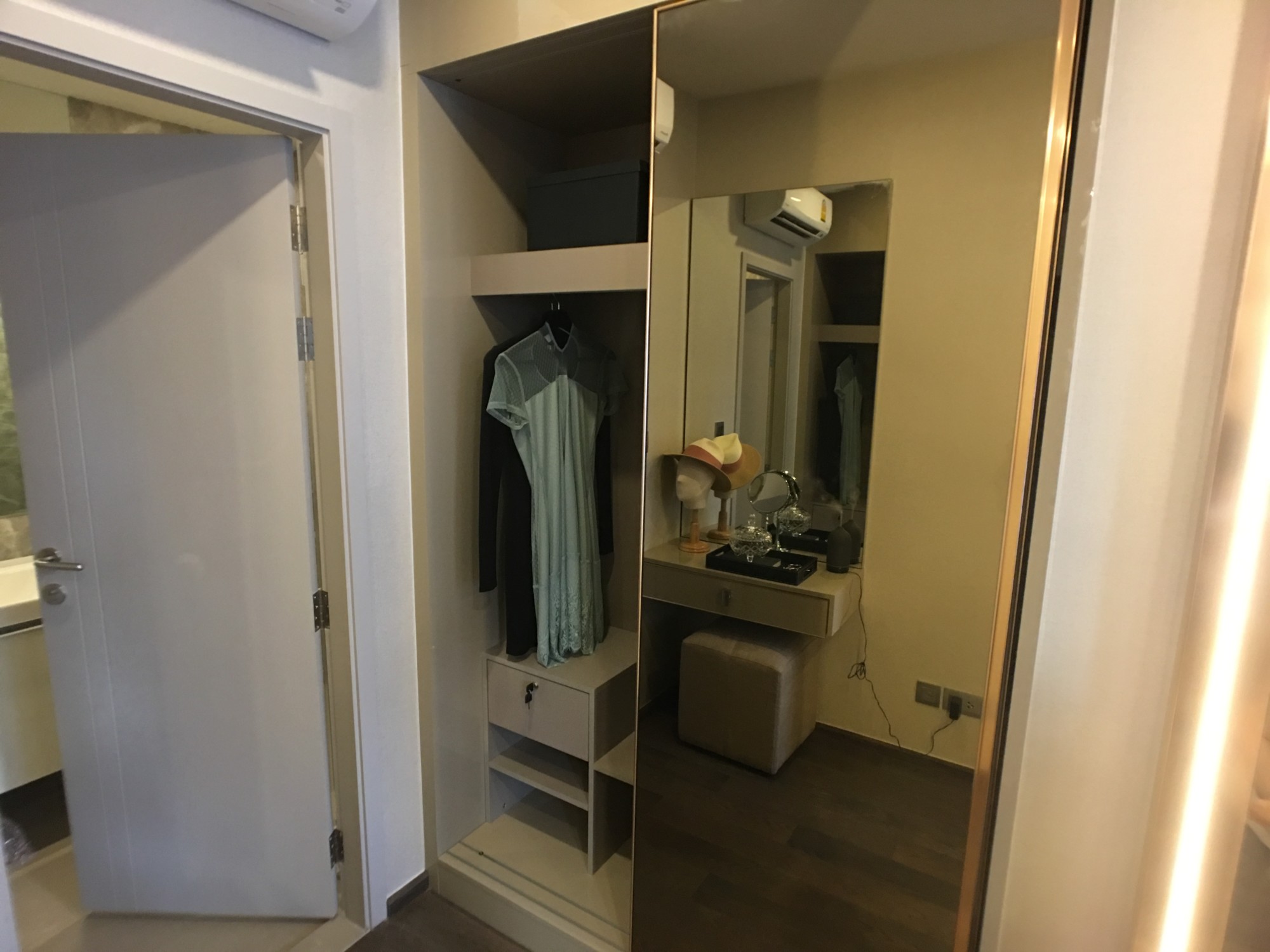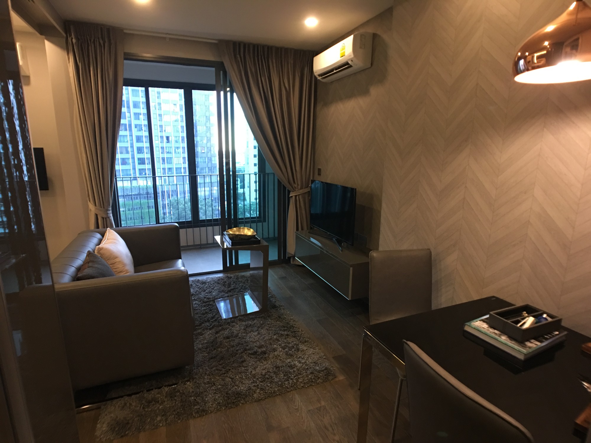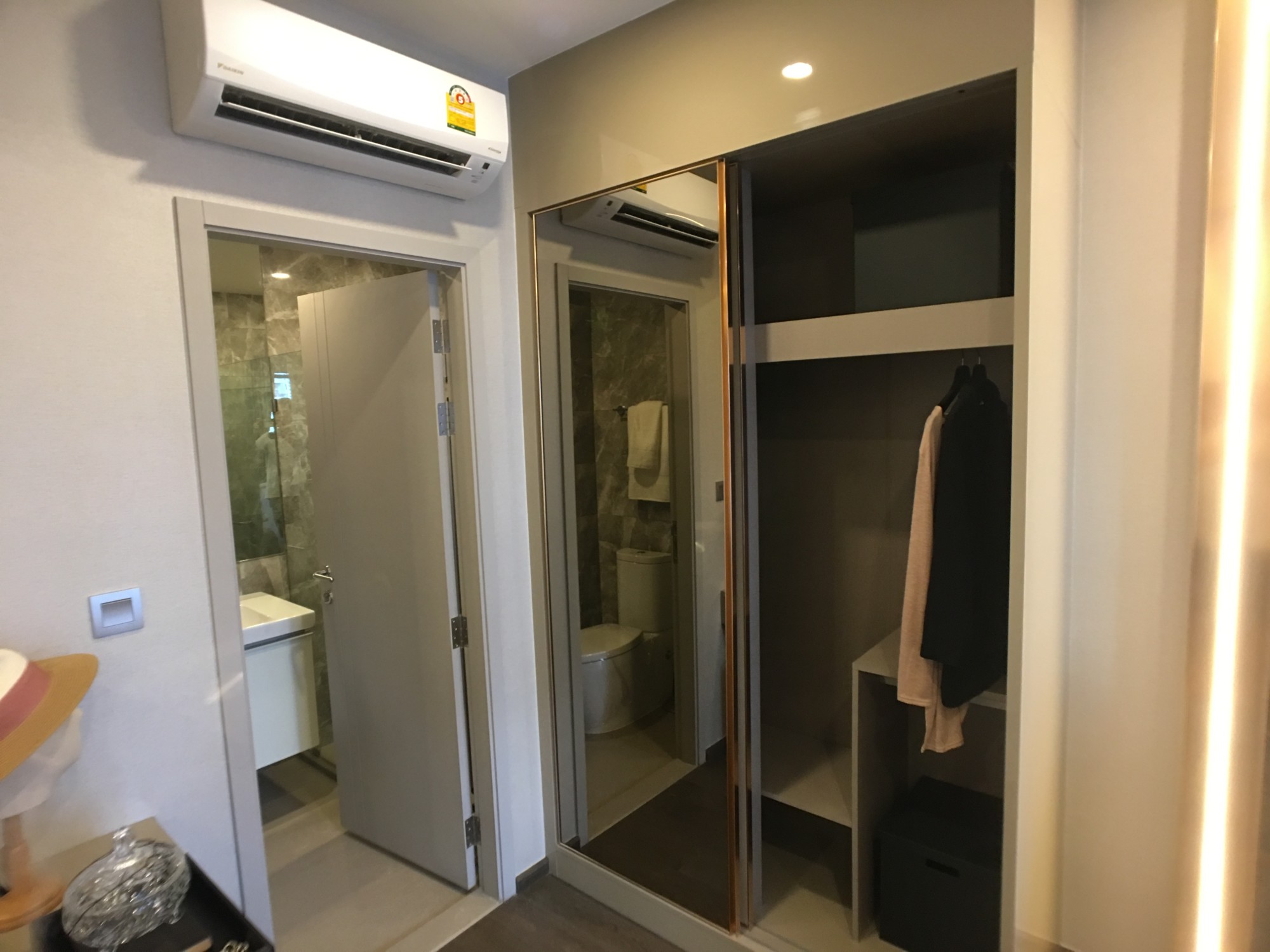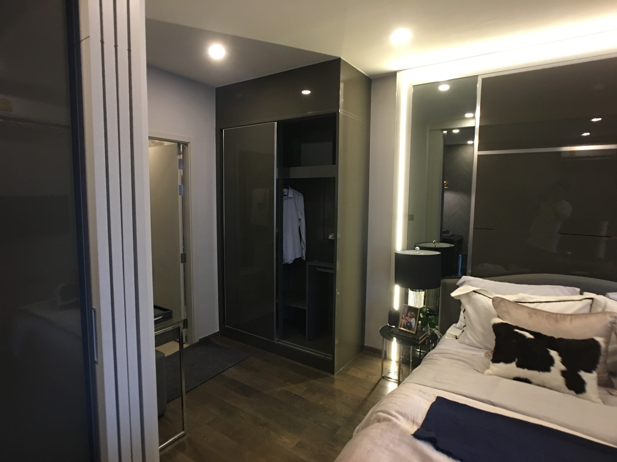 นอกนั้นผมว่าในห้อง spec มันเกือบจะใกล้เคียงกันเลย layout ในห้องก็เป็นแบบ โซฟาวางที่ปลายเตียง และมีประตูเลื่อนกั้นเตียง ออกจากโซฟาและ TV เป็น layout แบบเดียวกับ Ashton Asoke ด้วย (ผมไม่ค่อยจะชอบเลยอ่ะ มันก้ำกึ่งจะเป็น studio ยังไงก็ไม่รู้)